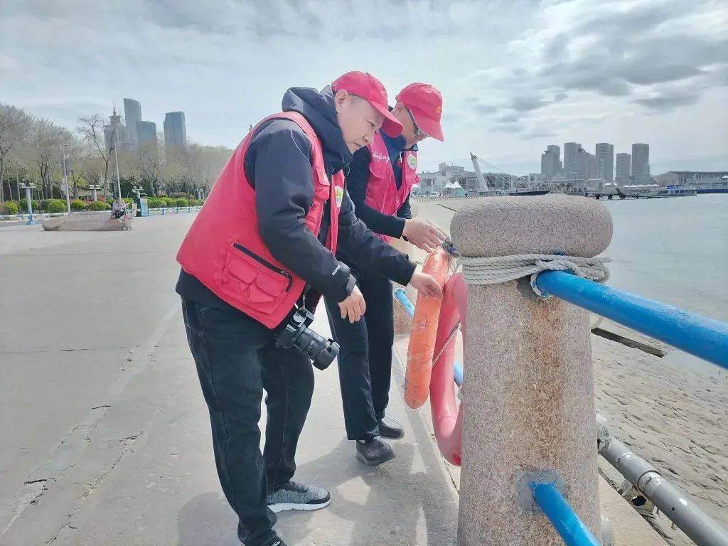 “海边风大,注意安全……”4月14日上午不到九点半,青岛侯丰摄影海岸救援队的队员们就在五四广场海边巡逻提醒。海边冷风袭人,温度较低,但仍有不少游客前来游玩。在提醒游客注意安全的同时,队员们还认真检查护栏上救生圈,如果发现破旧的,会及时向队里汇报,方便后期更换。