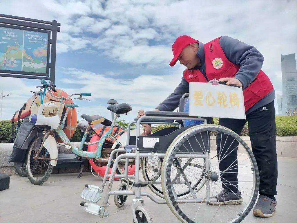 为了更好地服务游客,付守库还在点位上设置了爱心轮椅,免费供老人和腿脚不便的游客使用。“很多老人还问要不要钱,我就说免费的,不要钱,他们都特别感动。能够为游客提供高质量的服务,咱们心里也很开心。”付守库说。
