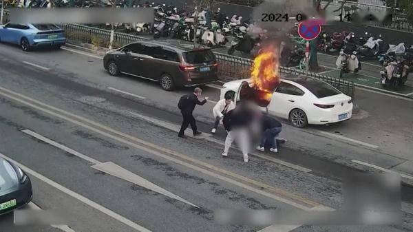 上班路过的陈竹听到呼救声,第一时间冲了上去,南京市建邺区双闸街道工作人员李有武听到呼喊也紧随其后,上前帮忙。当时副驾驶位置火势迅速蔓延,已经烧到主驾驶位,陈竹一把拽住驾驶员的腿往外拉。浓烟熏得人睁不开眼、喘不过气,虽然几次摔倒在地,但陈竹始终没有放弃,继续奋力拖拽。