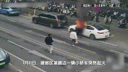 1月11日14时25分,一辆停放在南京市建邺区某商场路边小轿车突然起火,黑色的浓烟不断从车内冒出,车辆随时有爆炸的可能。此时,驾驶员被安全带卡在座位上无法脱困,情况十分危急。