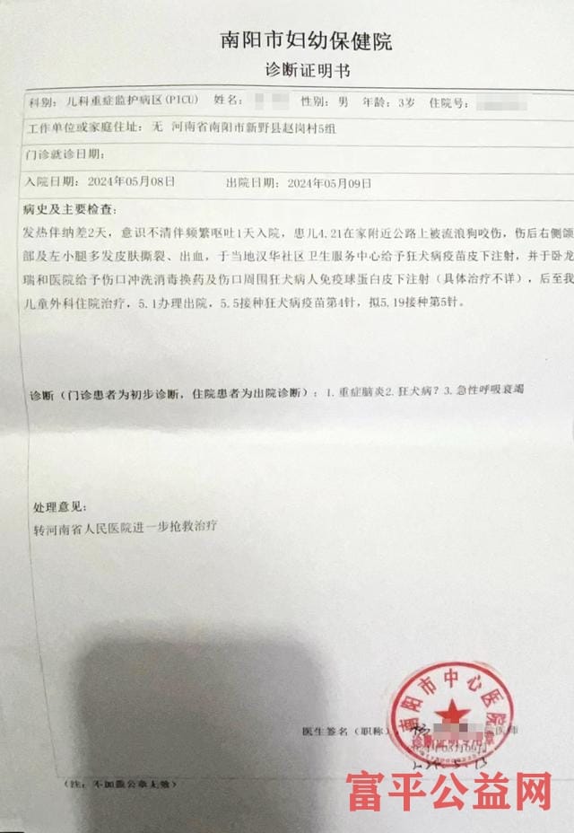 富平公益网14日讯 4月21日,河南省一起悲剧事件令人痛心。一名年仅三岁的男童在玩耍时,不幸被一只恶犬咬伤,伤势严重。虽经全力抢救,但终因伤势过重,男童不幸离世。