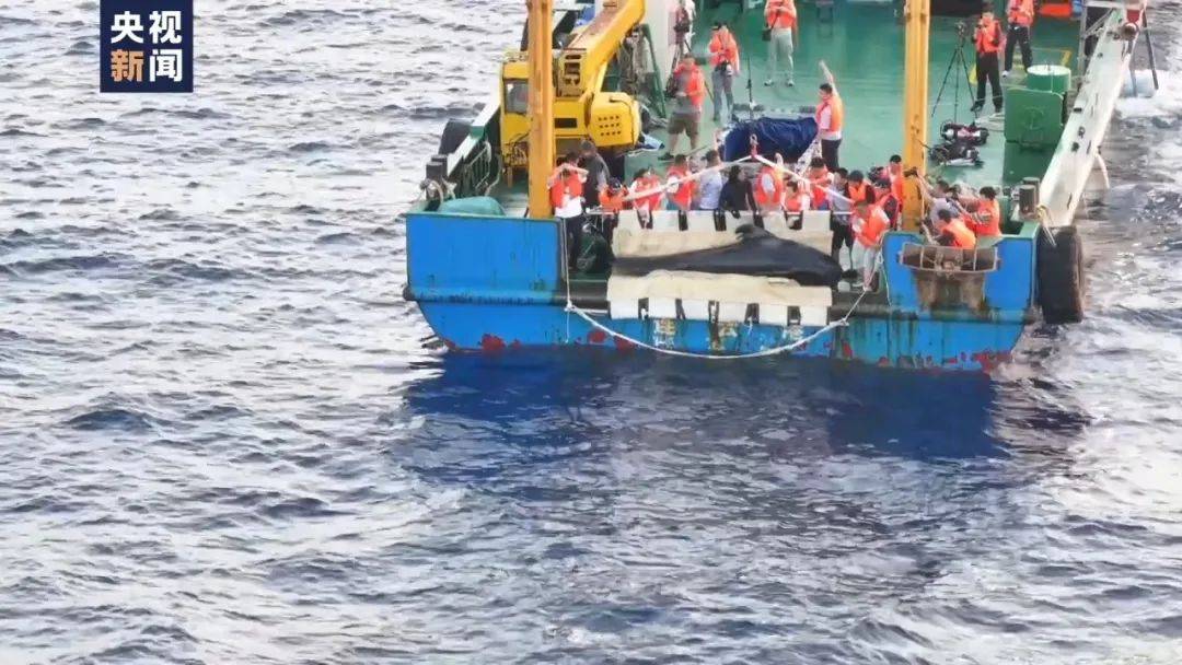 5月26日早上,迎着初升的太阳,利洋358科考船顺利抵达放归海域。在三亚搁浅的短肢领航鲸“海棠”,在距三亚海岸70海里、水深500米的海域被成功放归大海。