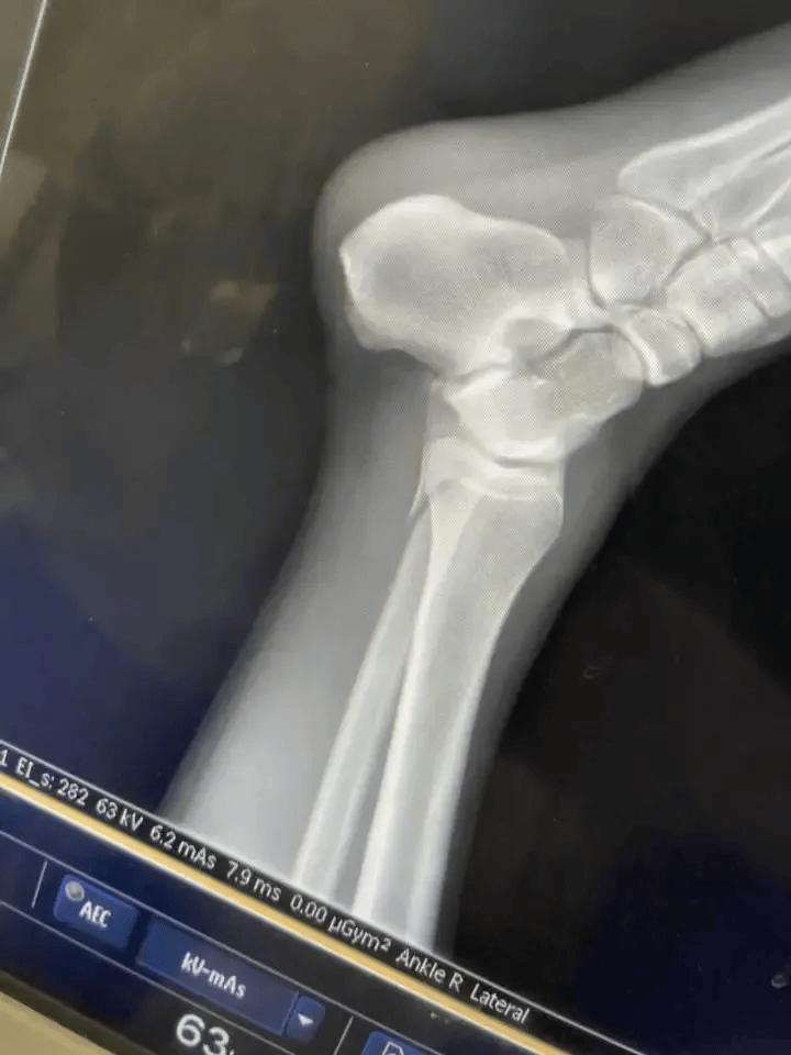 “我感觉水下有个不平的东西,当时一瞬间还没感觉脚崴了,硬撑着走上岸就走不动了,最后用一只脚蹦到救护车上。”