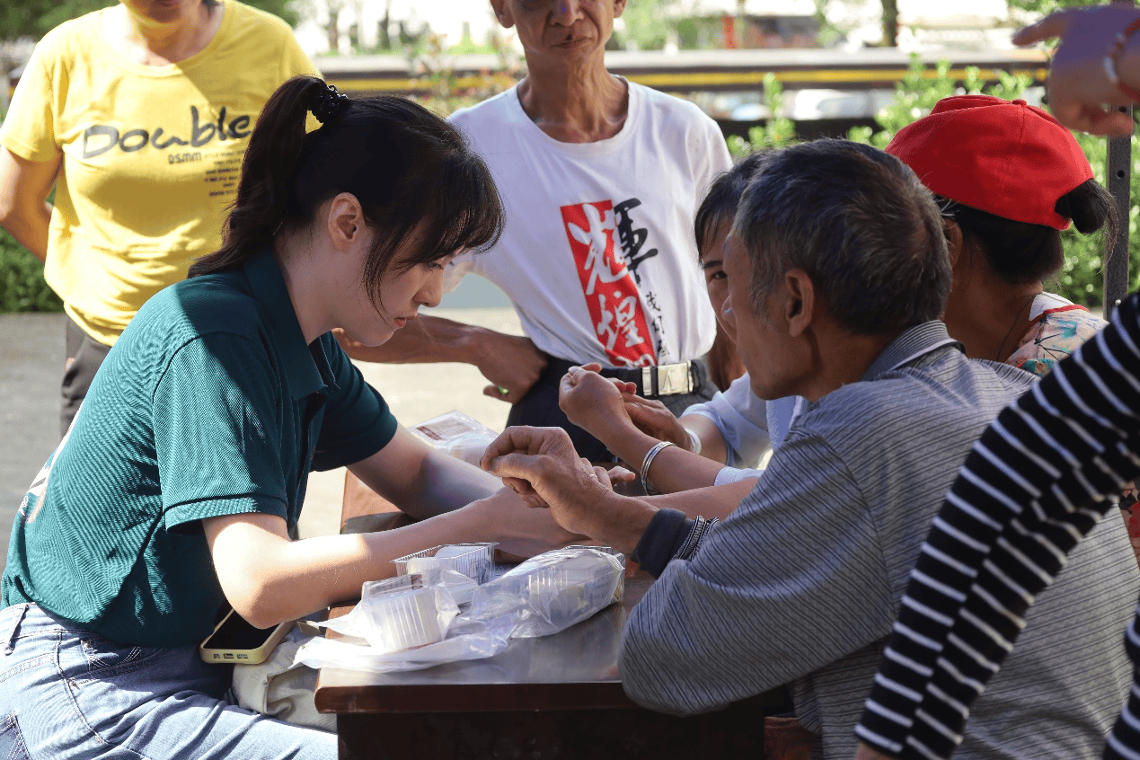 一位刚接受完推拿的村民激动地说:“非常开心能够有这样一群充满活力的年轻人来到我们这里,这是我第一次看到那么多大学生,第一次感受这样有温度的义诊,推拿完我的肩颈舒服多了,还对症选穴贴了三伏贴,真的很感谢这群年轻人!”