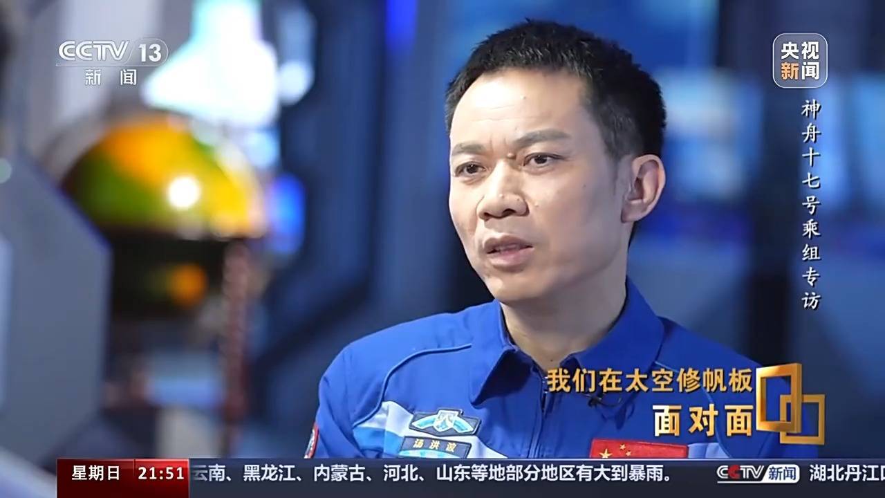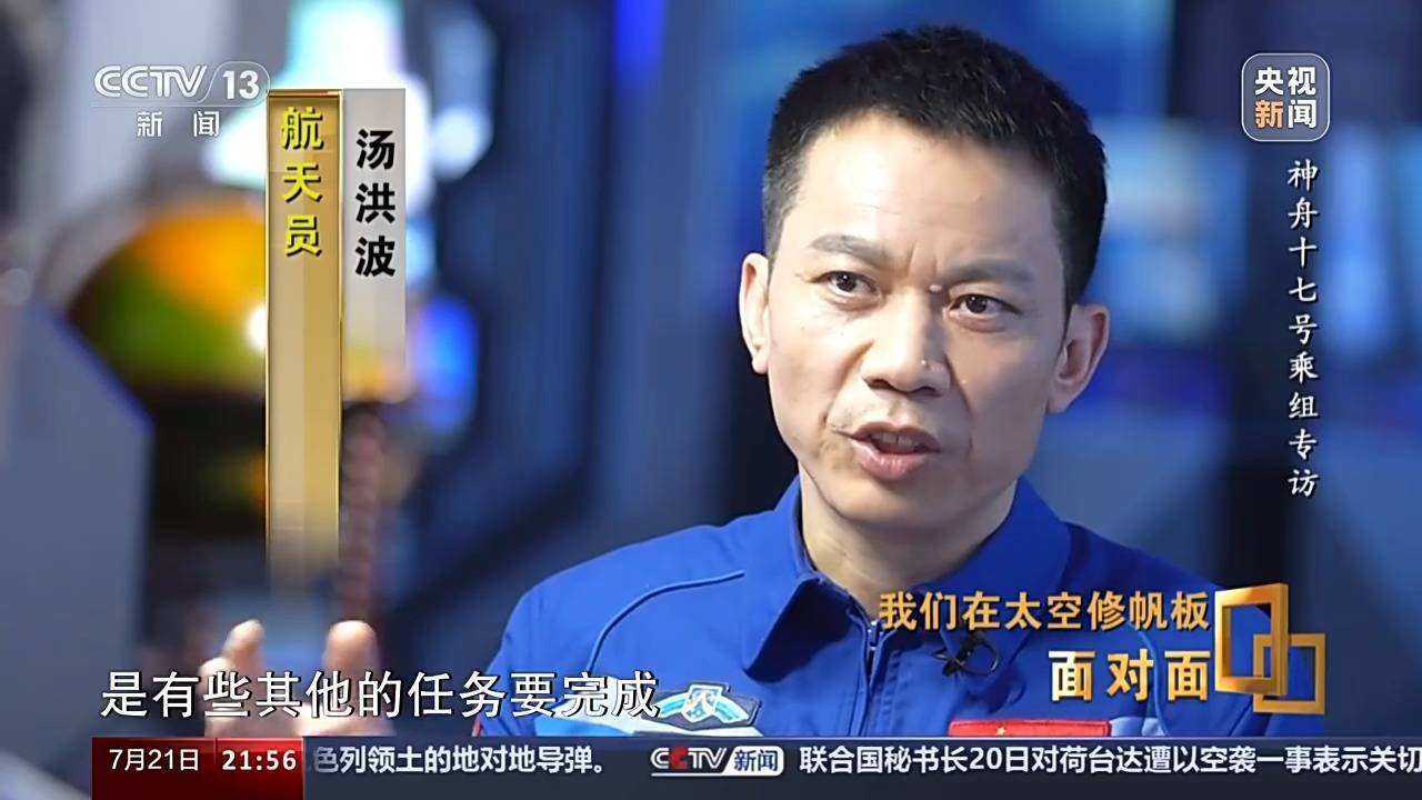 汤洪波:其实我们这一次本来原计划出舱是有些其他的任务要完成,但是因为空间站在轨过程中,那个微小的碎片击中了太阳翼,导致发电功率下降。