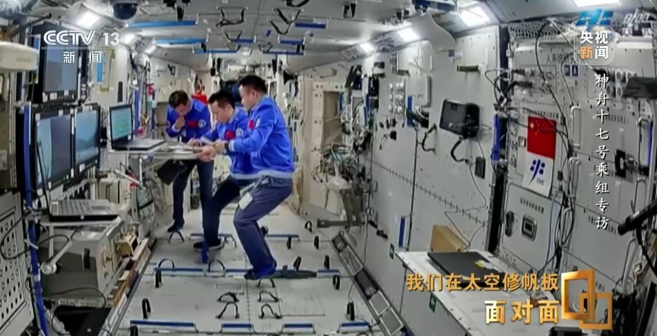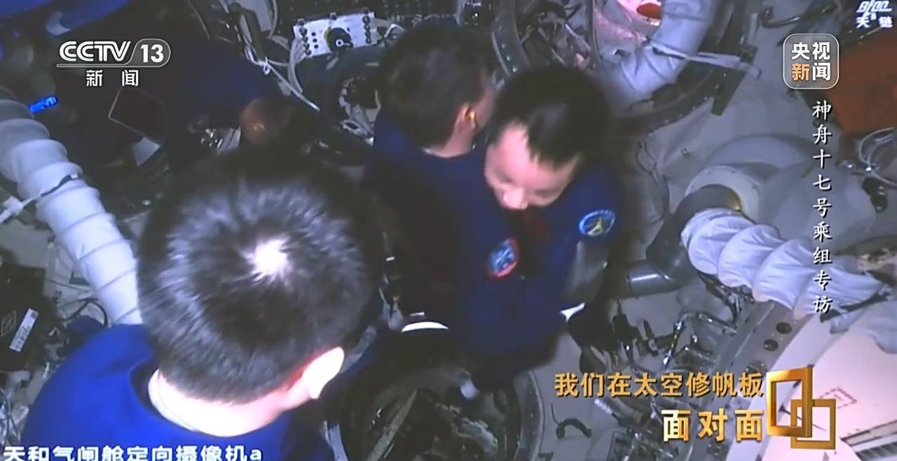 汤洪波:感觉还特别新,跟我们撤离的时候感觉是一样的,只不过是空间站的空间变大了,科技感更强了,以前可能就是天宫空间站是神舟飞船、天宫空间站核心舱,然后货运飞船是一条直线。现在它有分支了,在节点舱往两边分,一边是问天,一边是梦天,所以说空间很大。这次一上去会师的时候,首先在天和核心舱会师,我一进去,就感觉回家一样,特别熟悉特别亲切。