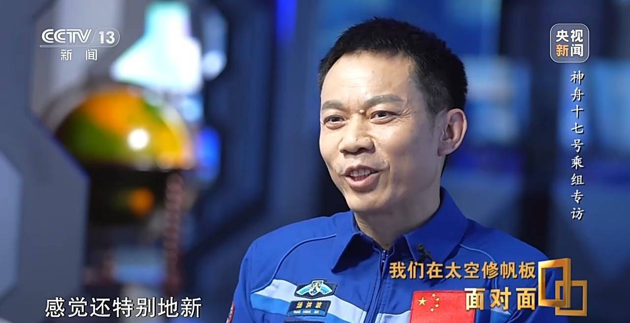 汤洪波:就是满满的科技感和这种自豪感,很兴奋,我其实是个山村的孩子,我小时候就是在农村,就是我们插秧,夏天暑假的时候,湖南农村水稻田里面那个水晒得很烫,可能有五六十摄氏度,脚都下不去,烫脚。我那时候初中的时候,高中的时候,暑假就要插秧,特别晒、特别难受,然后我就想着,天上要是有一朵云飘过来挡着这个太阳就好了,但是没想到我现在有机会能够到太空去,去维修太阳翼。这个跨越太大了,我感觉特别神奇。