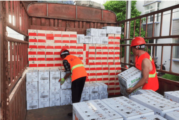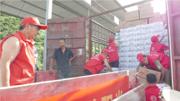 捐赠物质抵达垫江县和忠县,志愿者们正在卸货
