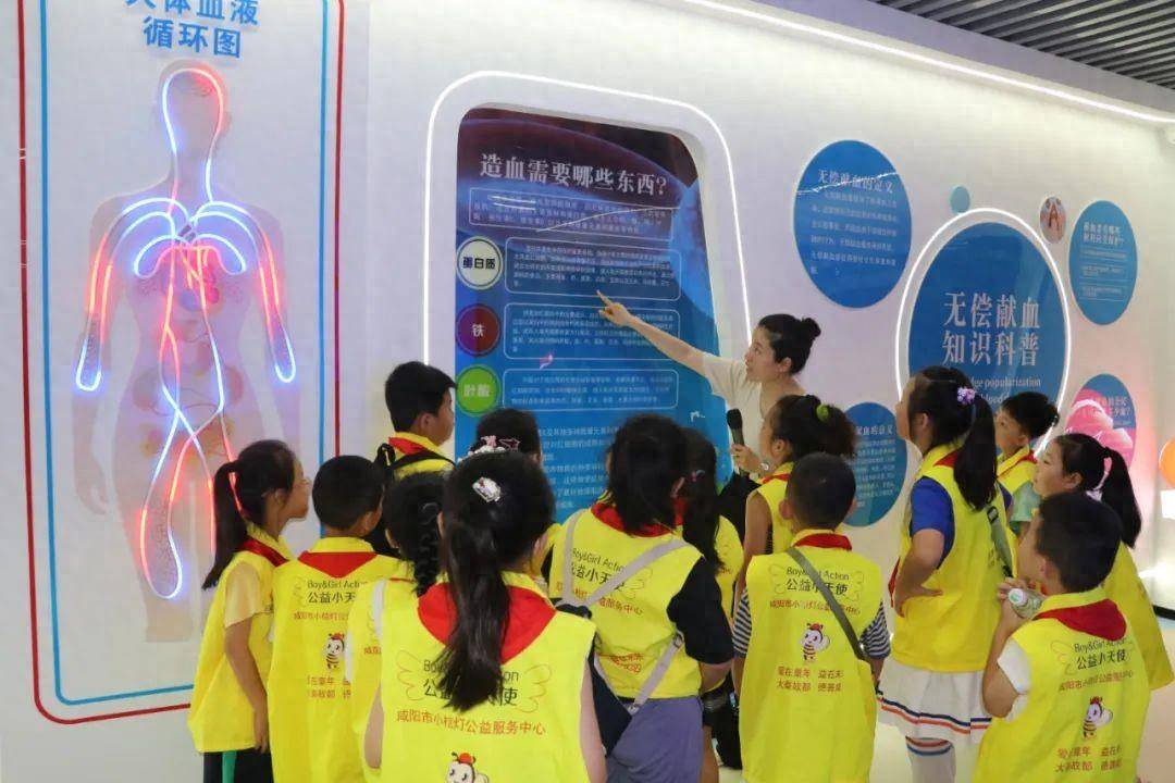 公益小天使们参观了无偿献血科普博物馆,了解了世界血液史、中国献血史和咸阳市无偿献血史。在科普馆内,通过讲解,大家对血液常识和无偿献血的意义有了更深的认识,年纪尚小的小天使们虽然还未达到献血年龄,但是都愿意成为一名无偿献血宣传员,告诉周围的人献血并不那么的可怕,动员更多人加入无偿献血的爱心队伍。