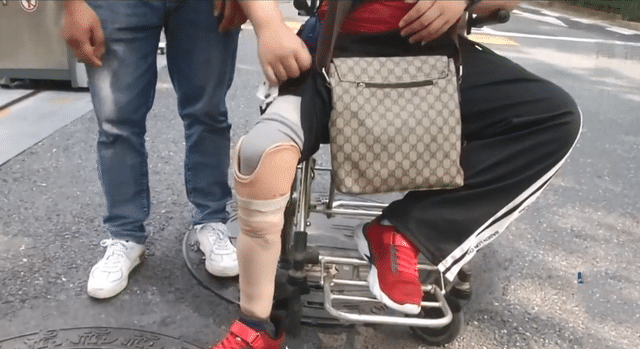 一位男子正在和媒体诉苦,自己孩子出车祸截肢要更换假肢,此前也筹了不少的善款,但是这笔善款却用不了。