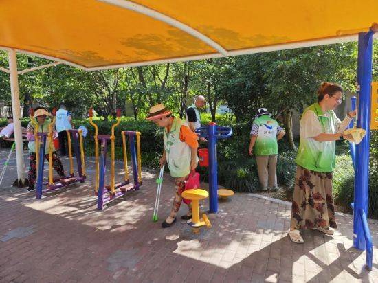 淞南九村一居委组织物业工作人员、志愿者共同撸起袖子,扮靓社区“颜值”。大家分工明确、合作默契,不仅对小区内的所有道路、绿化带、公共设施进行了细致清洁,也对来往居民宣传了垃圾分类的重要意义。
