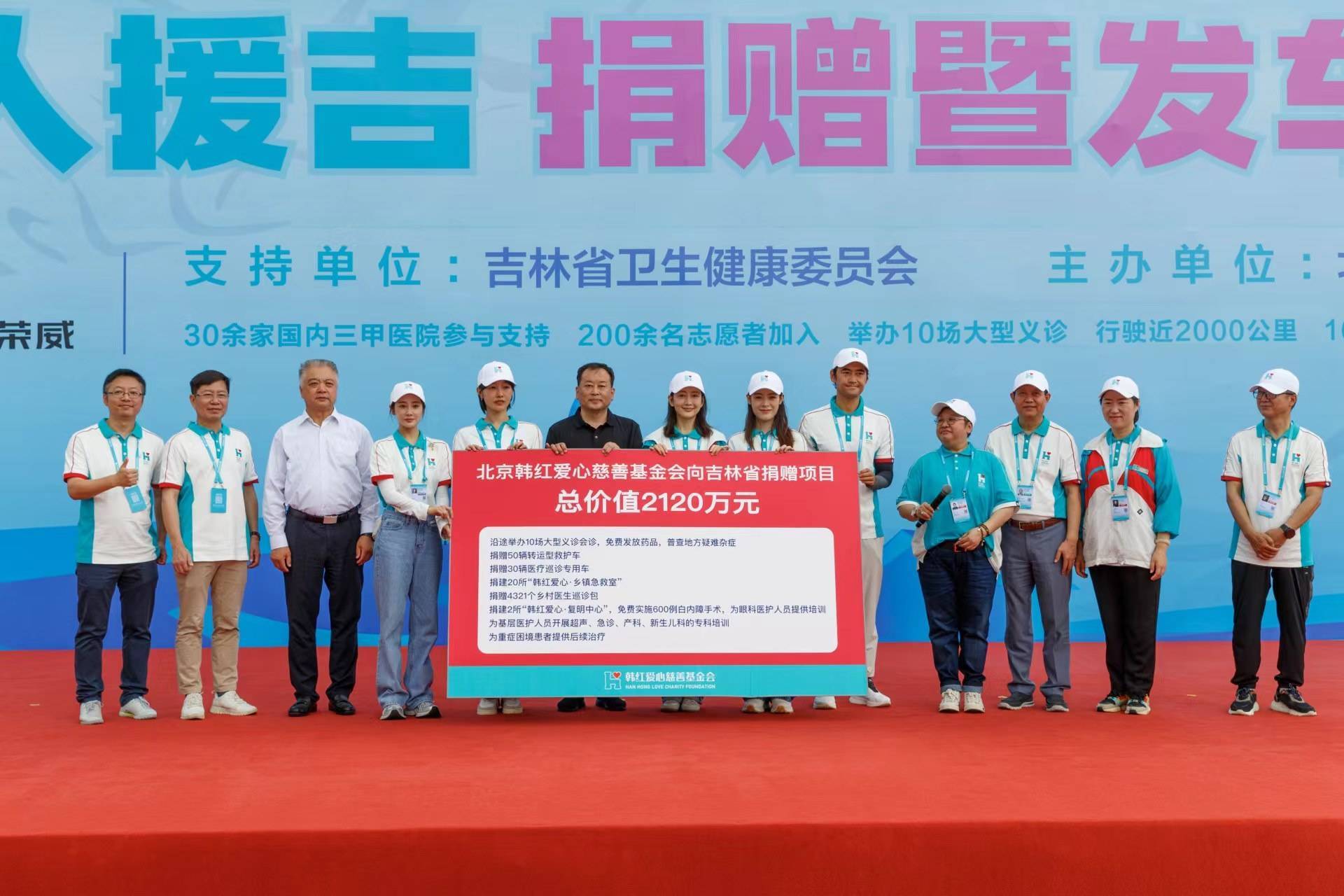 此次公益行动由北京韩红爱心慈善基金会发起人韩红带队,将在吉林省大安市、白城市洮北区、通榆县、长岭县、双辽市、柳河县、靖宇县、和龙市、汪清县、安图县等地举办10场大型义诊、普查地方疑难杂症、免费发放药品、为义诊中筛查的重症困境病患提供后续医疗救助,捐赠50辆转运型救护车、30辆医疗巡诊专用车,捐建20所“韩红爱心·乡镇急救室”,捐赠4321个“乡村医生巡诊包”,捐建2所“韩红爱心·复明中心”、免费实施600例白内障超声乳化手术,为基层医护人员提供专科培训 (覆盖眼科、超声科、急诊科、产科和新生儿科)等。在公益战略合作伙伴东鹏饮料集团、上汽集团(上汽荣威)、韩红爱心月捐人及社会各界爱心人士的支持下,此次行动捐赠总价值为2120万元。
