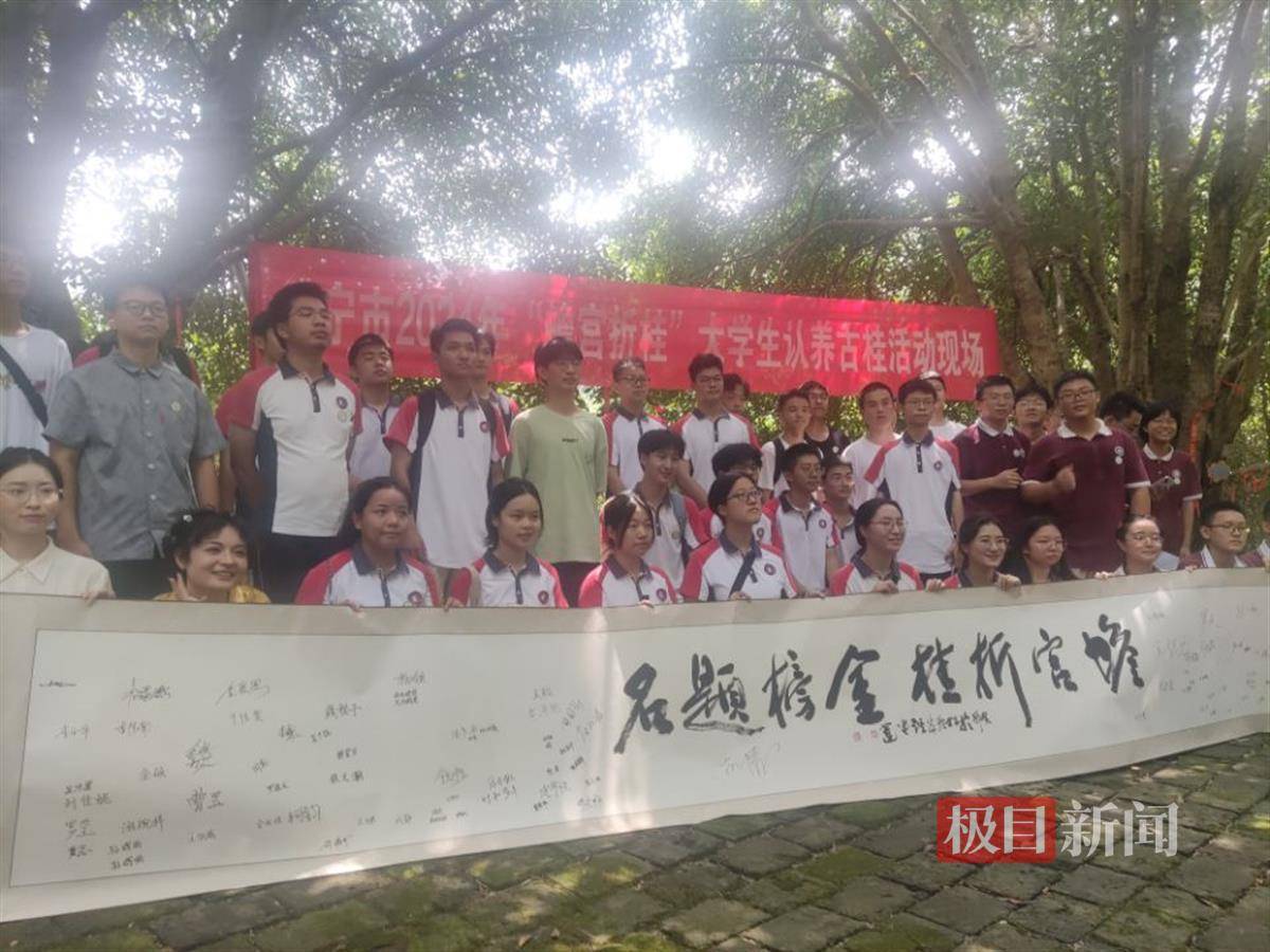 启动仪式结束后,这些准大学生们前往桂花源景区,在自己认养的古桂花树上系上红丝带。这些被认养的古桂花树挂上每名认养人的专属铭牌,上面注明树龄、品种、冠幅、保护等级,还有认养人的姓名、录取大学及个人愿景理想等。