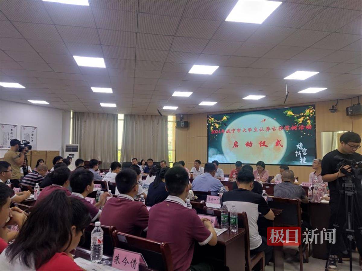 8月13日上午9时,2024年咸宁市大学生认养古桂花树活动在咸宁市教育局举行。此次活动中,共有93名准大学生及7个高中集体,认养了咸安区桂花源景区的一百棵古桂花树。
