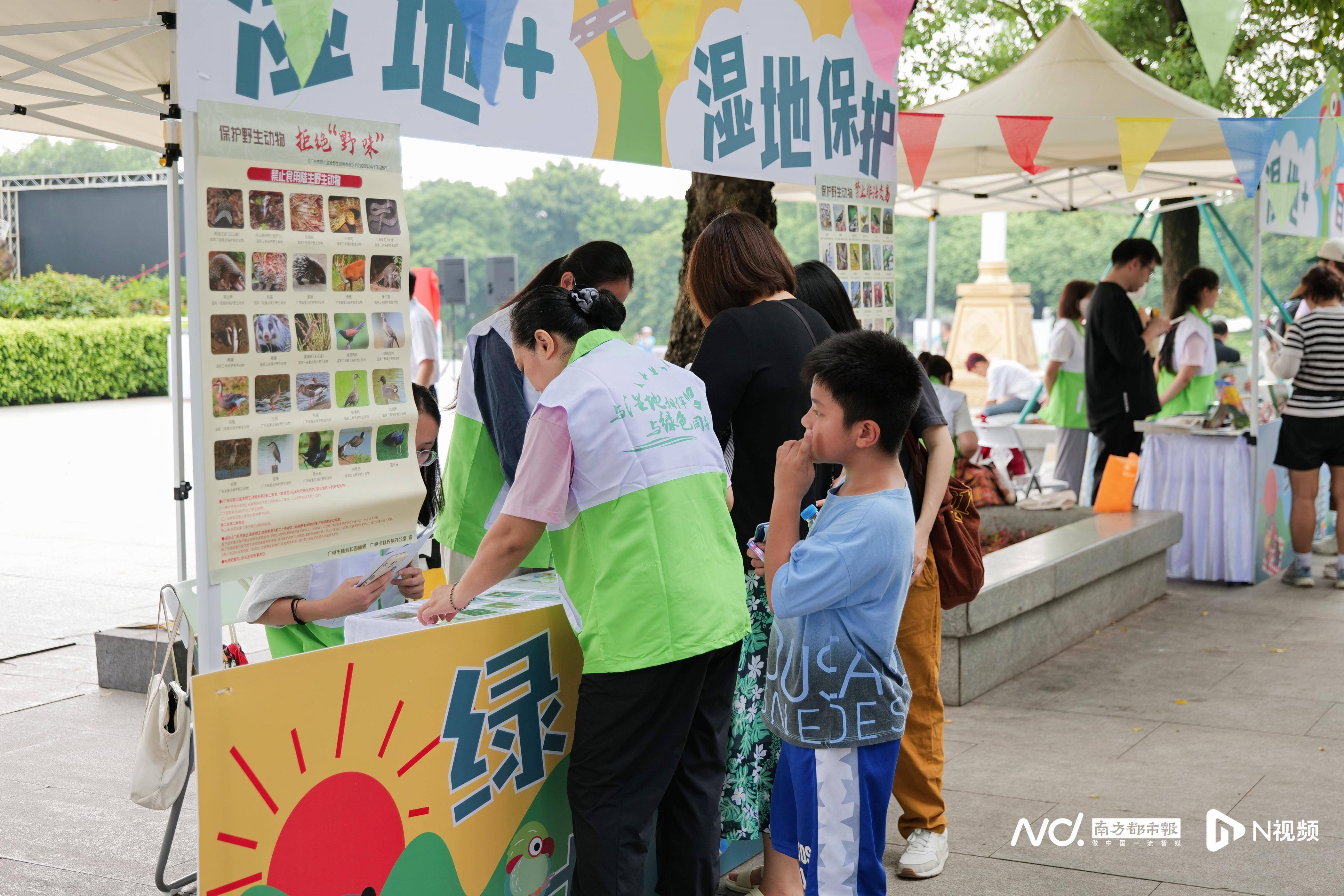 现场举办“绿美湿地好‘集’了”游园集市,设有科普教育、游戏互动等内容供游客参与。