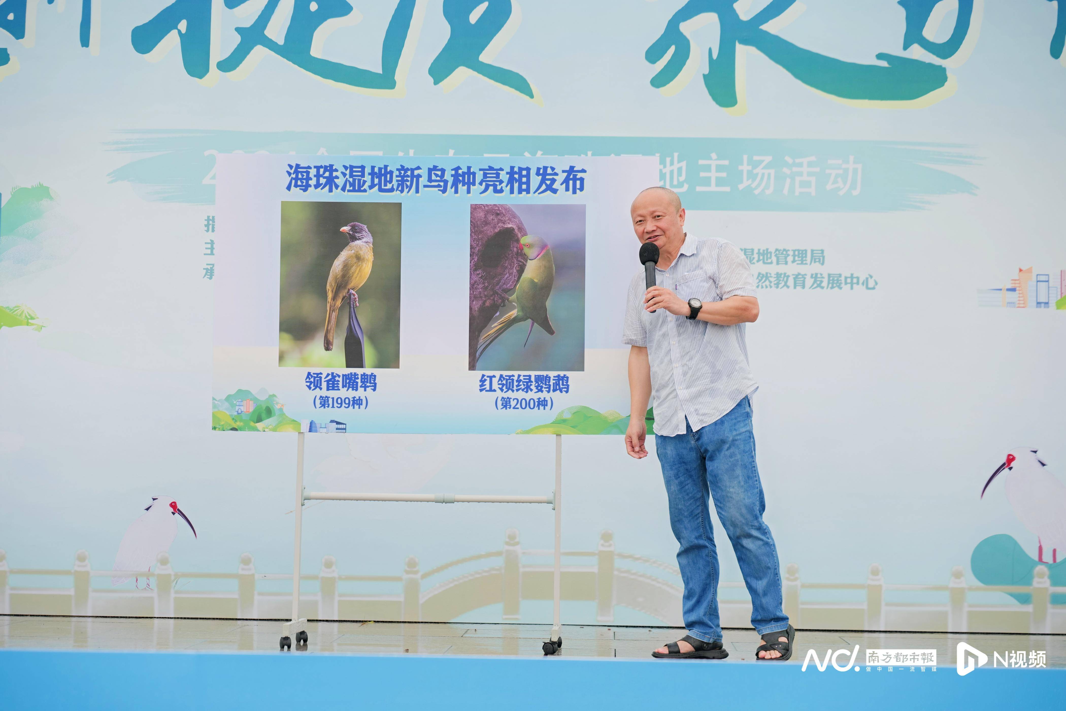 8月15日是第二个全国生态日。这天早上,在“逐新提质 聚势绿美”2024全国生态日海珠湿地主场活动上,广东省科学院动物研究所胡慧建博士介绍了两个在海珠湿地发现的新鸟类:领雀嘴鹎和红领绿鹦鹉。