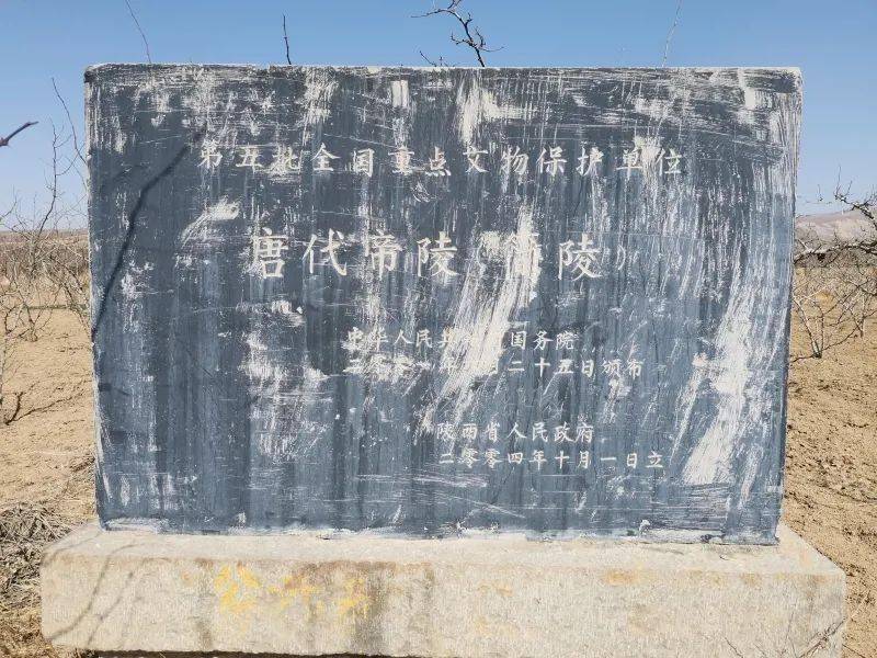 另一块是陕西省政府2004年立的全国重点文物保护碑,碑刻“唐代帝陵(简陵)”。