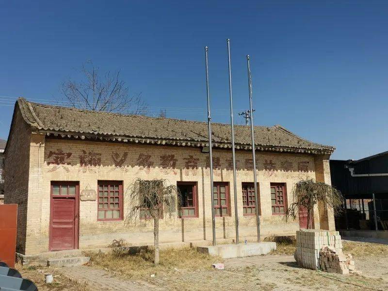 学校北面的房子一看就是解放后建的,教室前立着旗杆。