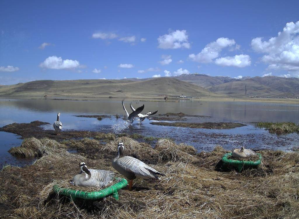 甘肃尕海则岔国家级自然保护区管护中心湿地科科长范龙说,为了方便候鸟繁衍、觅食、栖息,保护区工作人员在湖中心岛布设了40个人工鸟巢。工作人员还在鸟巢附近布设了红外相机,拍摄到大量候鸟活动和繁殖的照片、视频。
