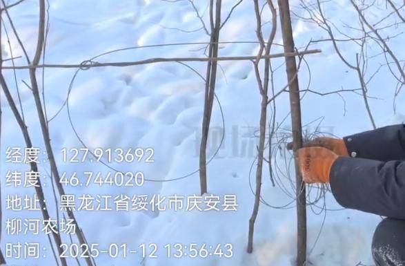 志愿者还称,2025年1月11日、12日,他们来到伊春市铁力市桃山镇、双丰镇,绥化市庆安县等地的林场,在现场发现了猎套以及血迹残留。现场视频显示位置为“伊春市铁力市桃山镇”“伊春市铁力市双丰镇”以及“绥化市庆安县柳河农场”。