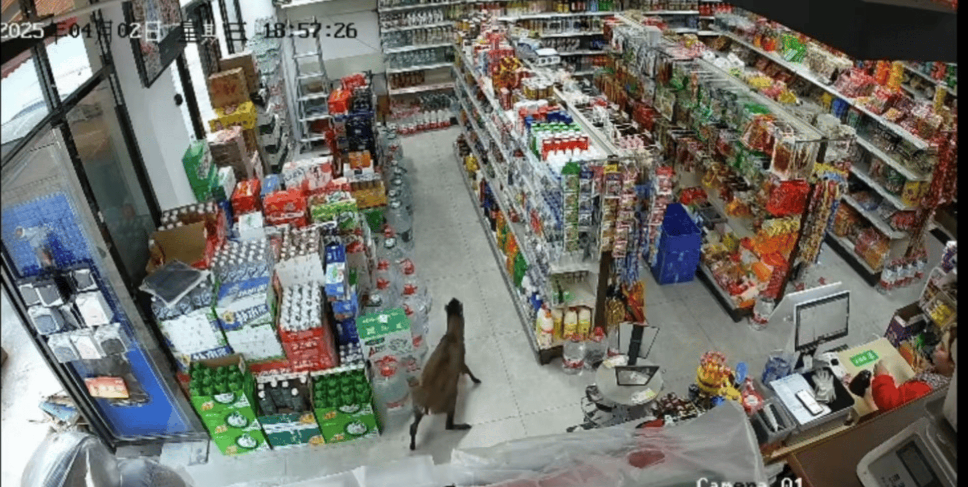 红星新闻记者了解到,事发时间为4月2日傍晚7时许,松潘县川主寺镇一超市内,一只头顶标志性黑色鬃毛的“小访客”悠然踱入。超市老板童佳蕊起初误以为是流浪犬误闯,细看后惊喜地发现竟是罕见毛冠鹿。“它不慌不忙地转悠,像在逛商场似的。”童佳蕊回忆道。
