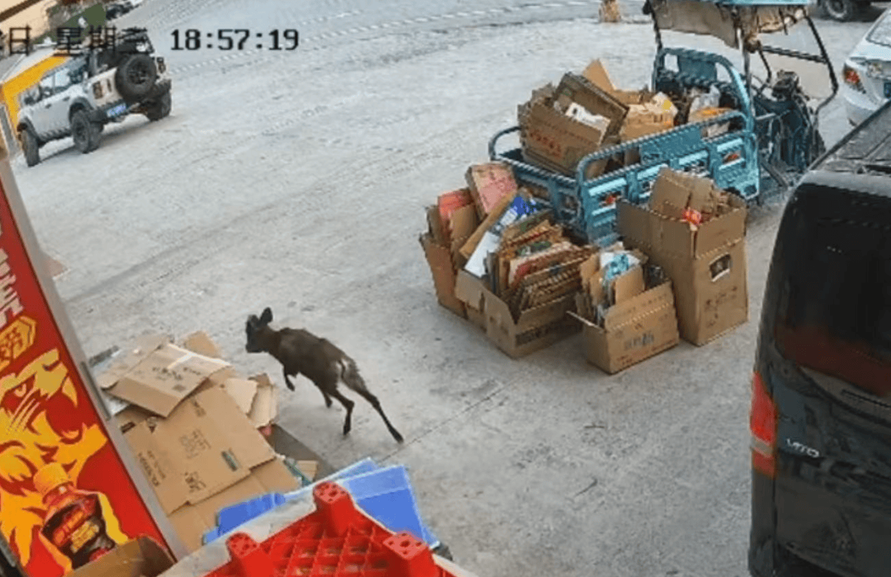 ▲毛冠鹿进入超市