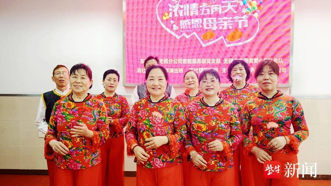 “这也是我们第一次到镇颐养院来陪老人过母亲节。”当天,洛社镇老年大学演出班周琴涛老师与她的学生程惠英、冯国霞等穿上节日盛装,为老人演出了葫芦丝合奏《2025一定要幸福》、女声小合唱《听我说谢谢你》等节目。