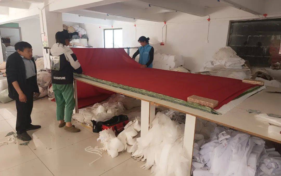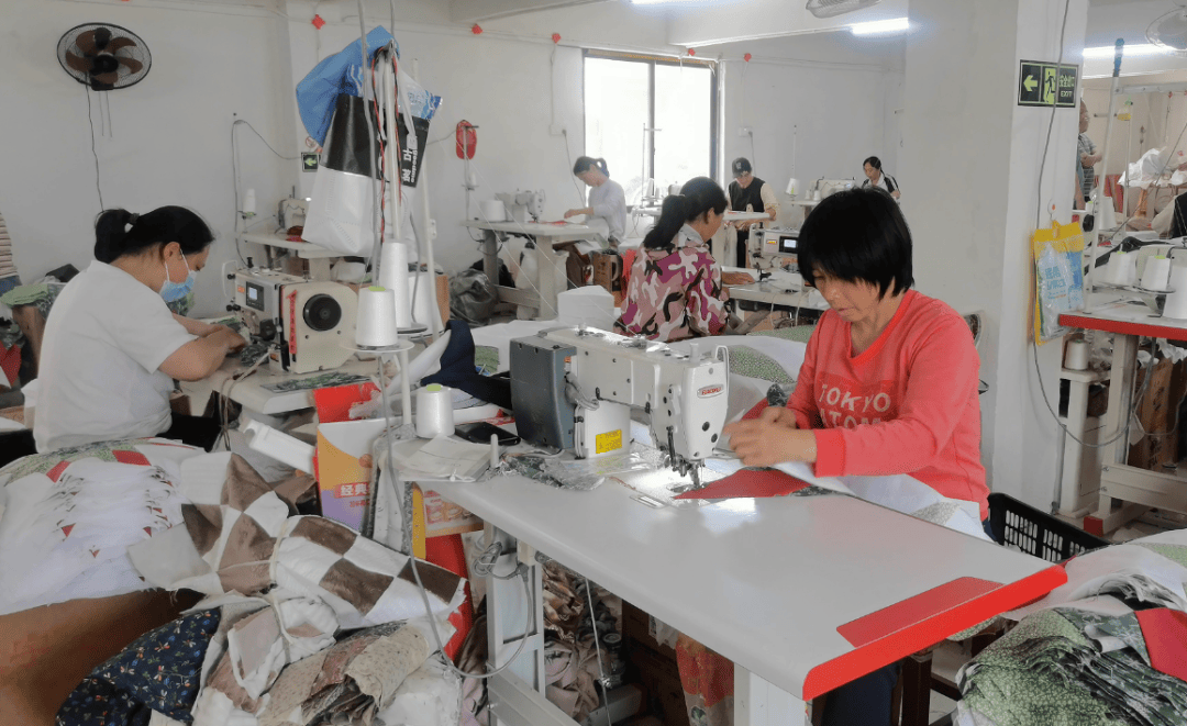 在家养病期间,肖映源仍关注市场动态,敏锐捕捉市场机遇。2019年,他得知浦江朋友订单繁忙,萌生将绗缝家纺订单带回家乡的想法。他与文道彩赴浦江争取合作,带回布料后却面临本地工人无经验的难题。夫妇俩手把手教学,组织工人起早贪黑赶工,最终700件高品质枕套赢得客户认可,之后订单源源不断。后来在麻城残联部门、驻红星村帮扶干部的大力支持下,厂家也持续提供设备支持,加工厂规模不断扩大、效益越来越好。