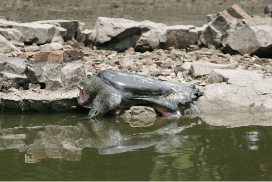 这个地球上现存体型最大的鳖类物种,成年后体型可达200斤以上,它凶猛,吃肉,为了争夺领地打得你死我活;它也安静,会在淤泥中冬眠,也会在水里慢吞吞地游泳,偶尔爬到岸边晒太阳,大多数时候都把一半身体浸在水中静静地趴着。