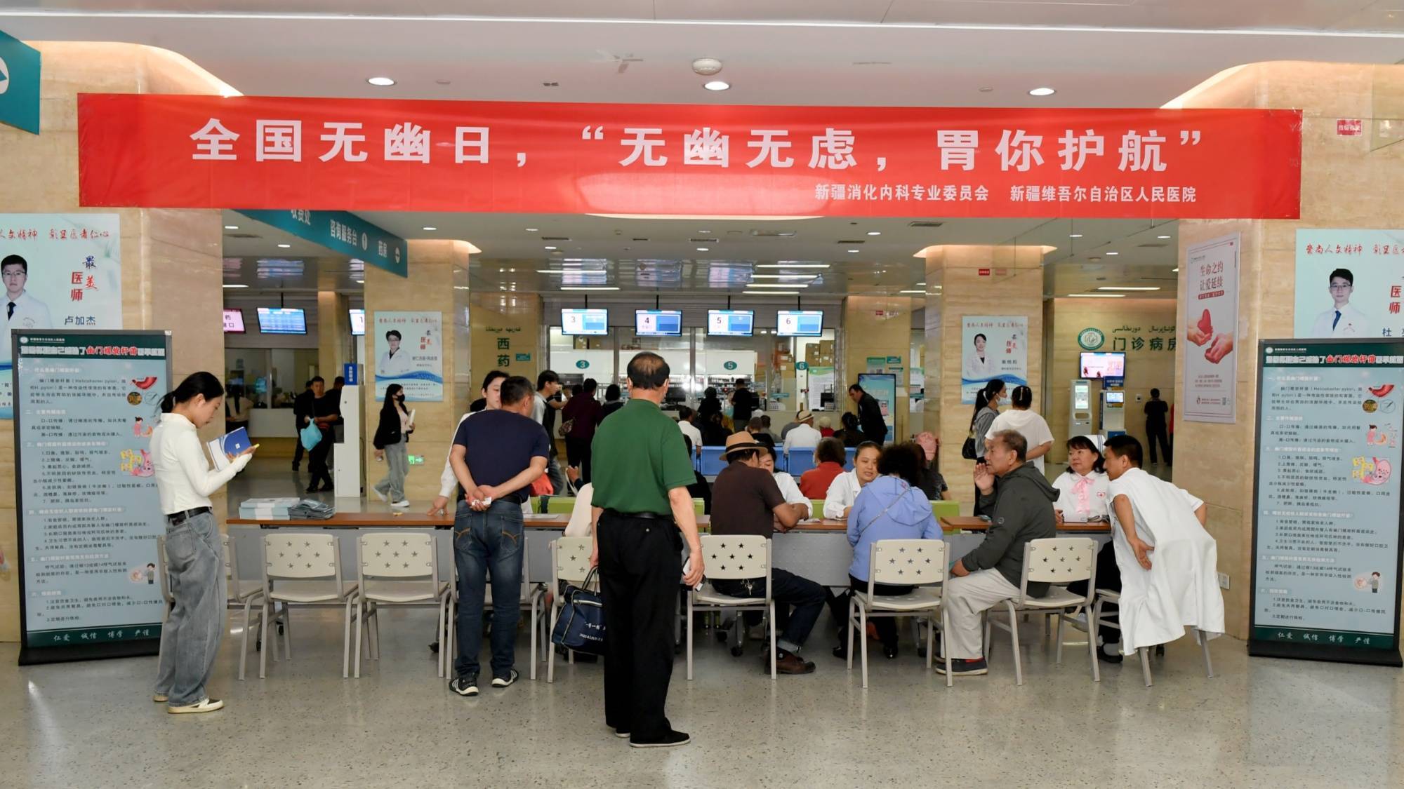 5月15日是第11个“全国无幽日”,为提高公众对幽门螺杆菌(Hp)感染的认知水平,倡导早筛查、早防治的健康理念,新疆维吾尔自治区人民医院消化科医护团队在医院门诊大厅开展“全国无幽日,无幽无虑,胃你护航”主题义诊活动,通过科普宣讲、免费筛查、个性化诊疗方案制定等系列惠民服务,将健康管理关口前移,切实为百姓筑牢胃肠健康防线。