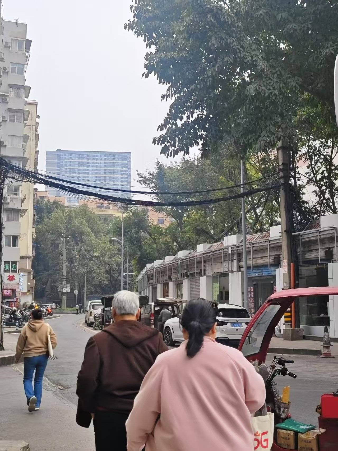 比如,最靠近中心的一层,都是社交型餐饮,鱼火锅、烧烤、泰国菜,奶茶店门口年轻人排着队。第二层夹在写字楼和居民楼中间,冒出一些小店,穿着正式的白领坐在那里吃午饭。第三层已经远离商业,市井气浓,路上都是大爷大妈,还有主妇带娃买菜。