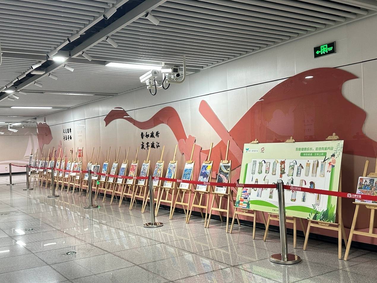 此次作品展布设在渡江纪念馆站C口通道内,巡展内容为面向安徽省中小学校及社会广泛征集的儿童绘画、作文等作品。少年儿童以强国为志、以科技为笔,将奋发学习、壮志报国的热情融入其中。一幅幅生动画作让“大国重器”跃然纸上,从青少年的视角展现出我国科技发展的磅礴力量,为渡江纪念馆站增添“科里科气”的文化气息。