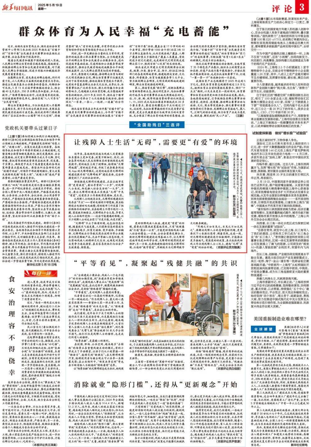 我们看到,近年来不少关于残障人士的影视作品不再只是渲染苦难,而是展现他们与健全人一样炽热的生命力。我们也看到,越来越多优秀的残障人士出现在新闻报道中,从首位盲人全国人大代表王永澄“指尖履职”,到巴黎残奥会上“无臂飞鱼”郭金城游50米几乎全程不换气,他们不仅是残障人士的榜样,也是我们所有人的榜样。