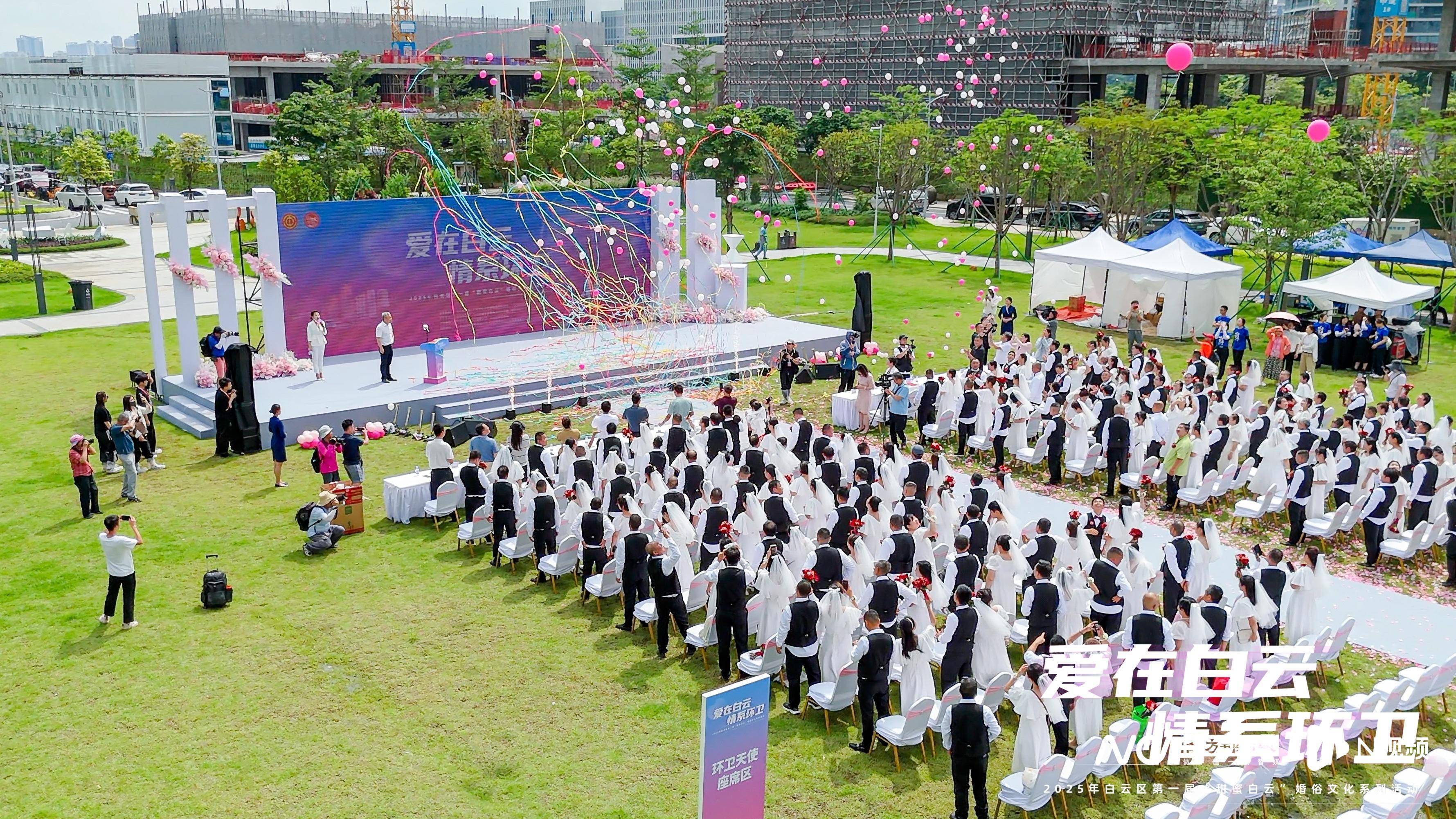 南都讯 记者钟丽婷 通讯员李绮姗 守护城市也守护你!5月20日,由白云区总工会、白云区城市管理和综合执法局、白云区民政局联合主办,白云区环卫工联会、白云区环卫协会承办的“爱在白云·情系环卫”致敬城市美容师集体婚礼庆典活动在白云艺术广场举行,100对携手相伴多年的环卫工人夫妻齐聚广场,一起重温幸福与甜蜜。