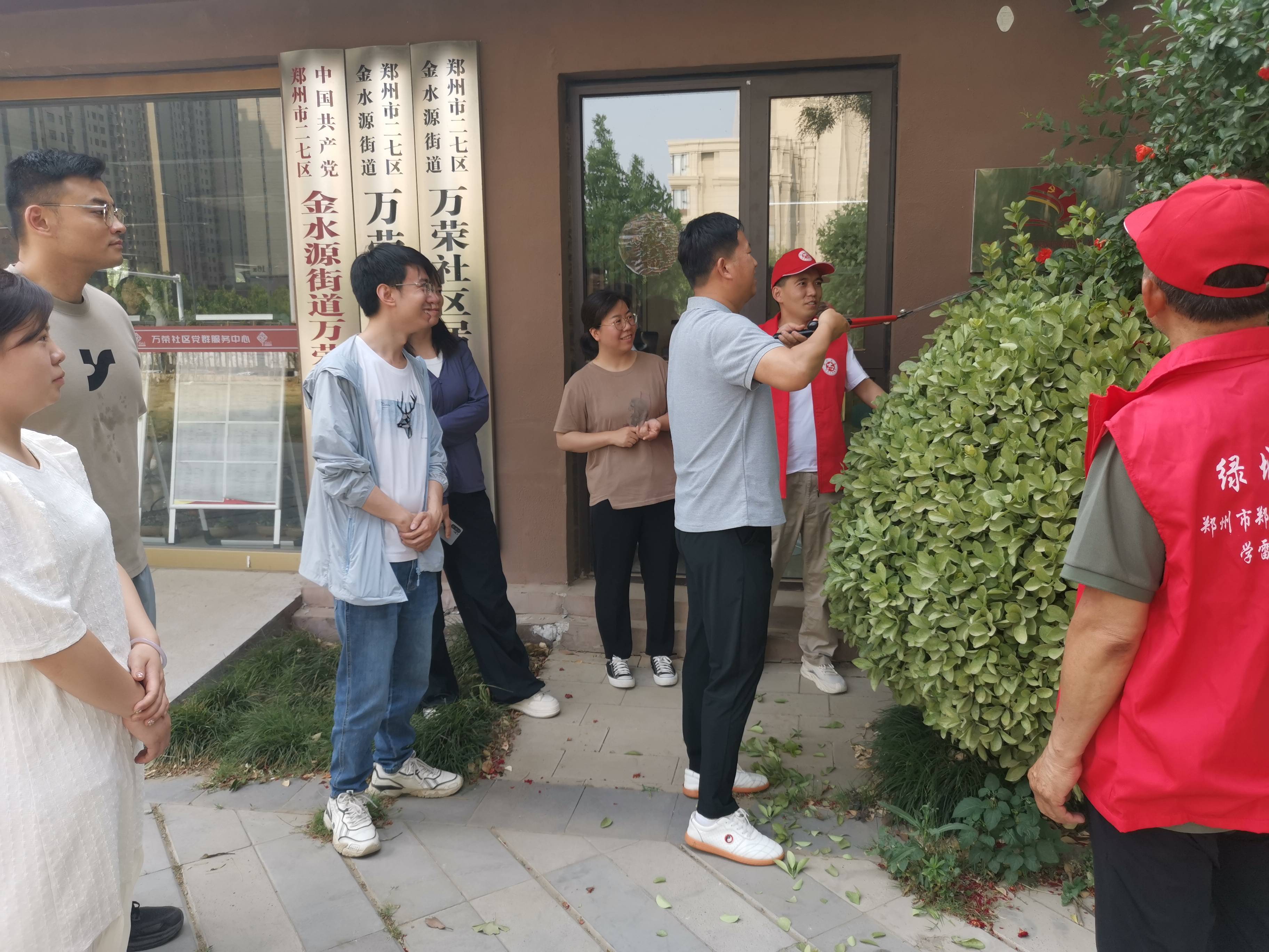 首先,进行生物多样性理论知识讲课,在郑州万荣社区党群活动中心,南环公园志愿者刘佳宝以《国际生物多样性日—为所有生命构建共同的未来》为题进行了生物多样性理论知识的解讲,向社区居民们详细讲解了生物多样性的由来、意义以及生物多样性对人类生存和发展的重要性。随后,南环公园园林绿化技术人员为社区群众讲解植物养护注意事项,绿化植物修剪注意事项,现场对社区管理人员培训了绿化修剪技术,提高社区园林植物养护管养水平。