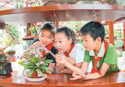 江苏省南通市先锋小学组织学生到当地洲际绿博园参观学习,了解生物多样性知识。 翟慧勇摄(人民视觉)