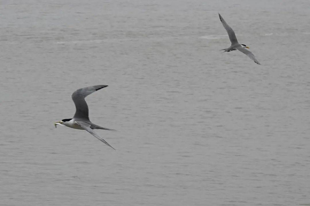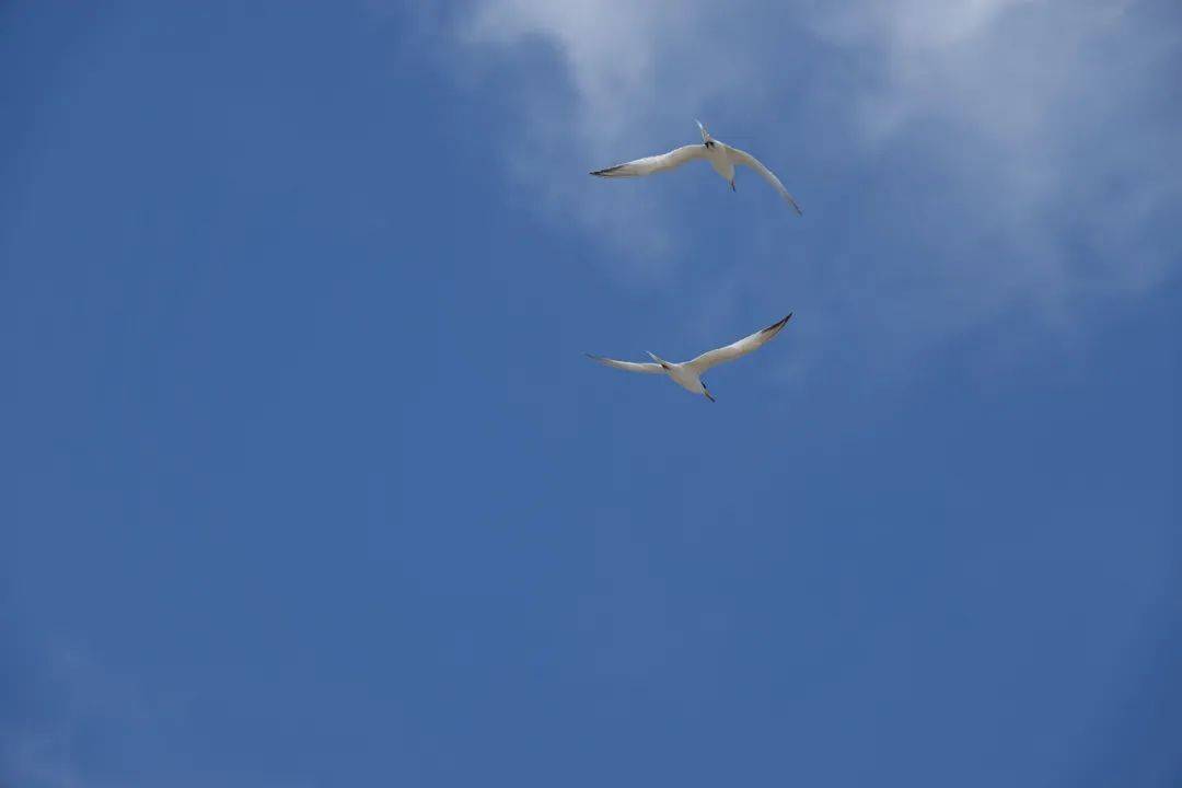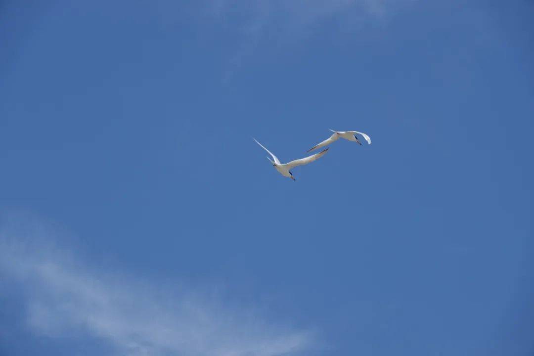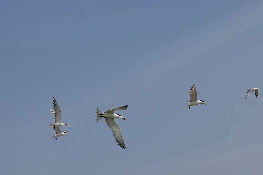 伴飞是双方的默契大考验,两只燕鸥相互贴近,以如出一辙的姿态高速飞行。它们整整齐齐掠过天空的身影,总让人惊叹不已。我猜想,这是身体素质、飞行技巧的展示与共同孵卵育雏前的磨合。