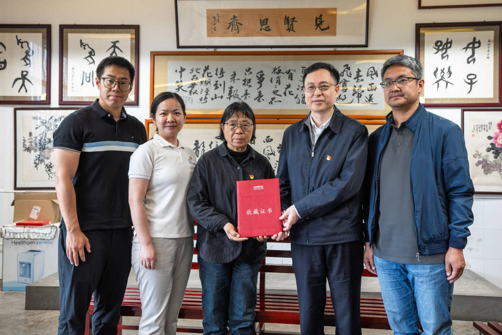 5月27日,张桂梅(中)收到国家博物馆颁发的收藏证书后留影。新华社记者 胡超 摄