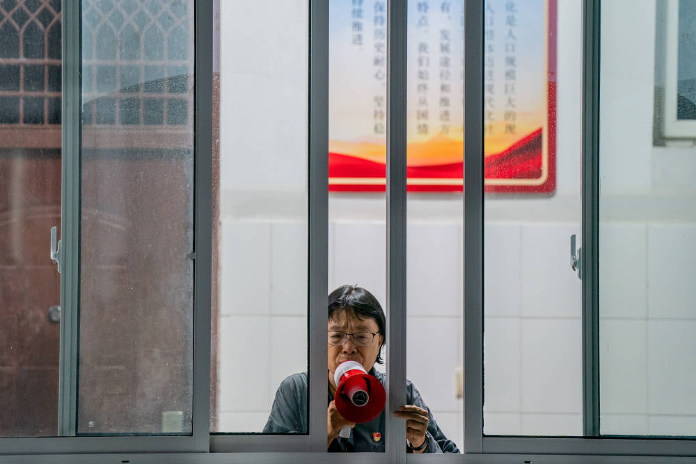 5月27日,张桂梅拿着新的小喇叭向学生喊话。新华社记者 胡超 摄