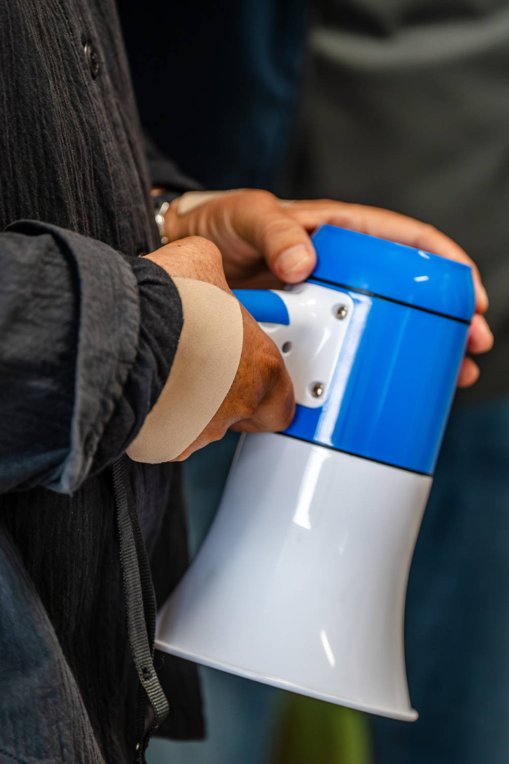 5月27日,张桂梅贴满膏药的双手握着新的小喇叭。新华社记者 胡超 摄