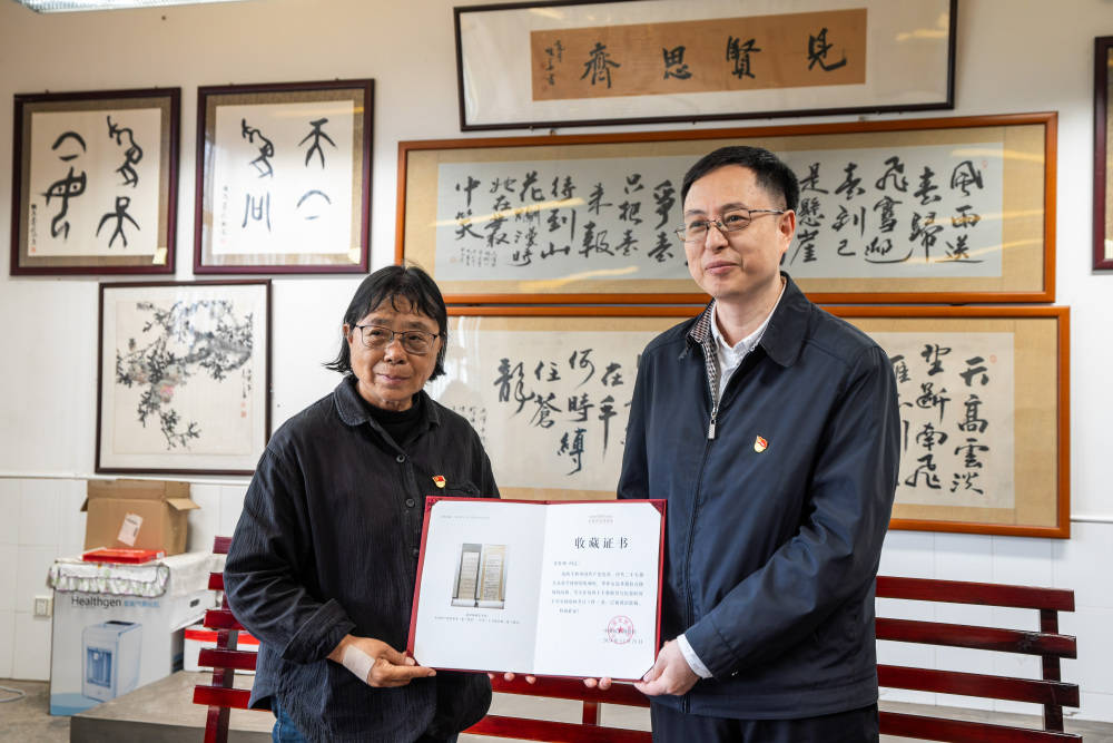5月27日,张桂梅(左)收到国家博物馆颁发的收藏证书。新华社记者 胡超 摄