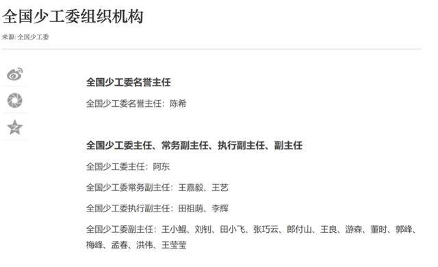 据共青团中央官网显示,全国少工委由中央党校(国家行政学院)校长(院长)陈希担任名誉主任。