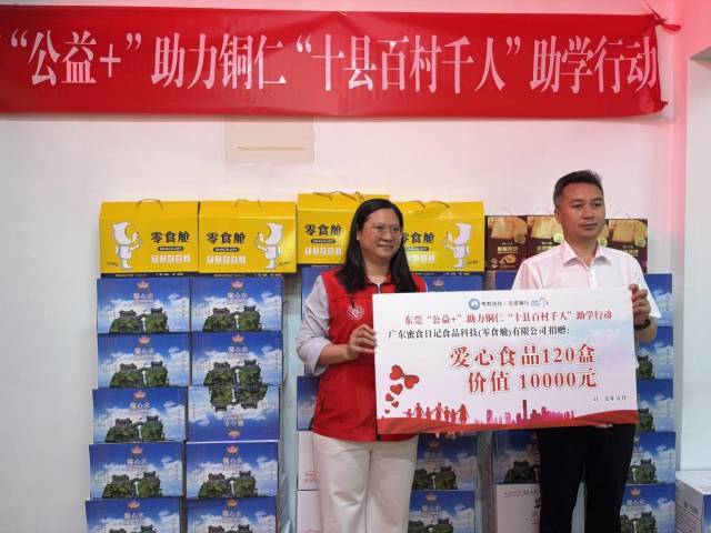 此次行动创新联动了莞铜两地20多家公益机构,汇聚政府部门、爱心企业、社会组织的合力,得到了东莞市民政局和铜仁市委社工部、铜仁市民政局、铜仁市教育局、共青团铜仁市委员会、铜仁市关工委等单位作为指导方共同支持参与,搭建起一座“公益倡导、政府支持、资源共享、优势互补”的公益之桥。启动仪式上,东莞市新盟食品有限公司、广东蜜食日记食品科技(零食舱)有限公司、德心水(江口)食品饮料有限公司、铜仁众望实业有限公司等爱心企业慷慨解囊捐赠资金和爱心物资,为开展好助学走访活动提供了坚实保障。