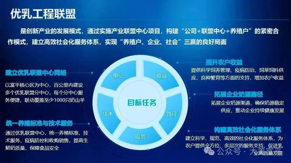 “优乳工程联盟”项目是根据中国奶业协会奶山羊专业委员会倡议成立的“优质羊乳工程联盟”而来,是面对奶羊产业新质生产力发展需求,全面升级奶山羊羊乳品质,推动饲养管理、生产加工等各环节向科学化迈进的新模式。