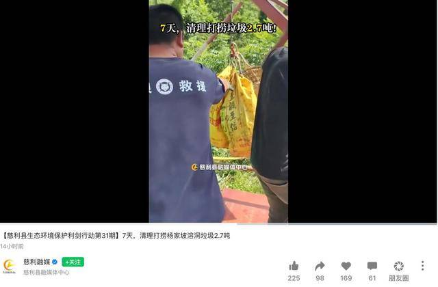 据慈利县融媒体中心6月1日发布的最新视频,7天,清理打捞杨家坡溶洞垃圾2.7吨。