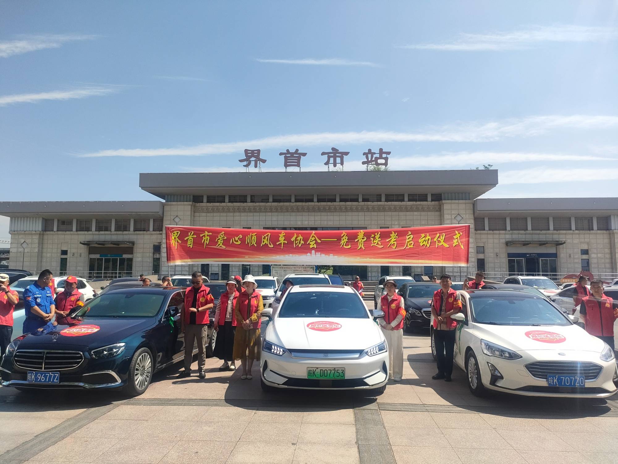 又是一年高考季。6月4日一大早,爱心志愿者们已驾驶着爱心车辆陆续汇聚到界首火车站广场,一场为高考学子护航的爱心送考行动正式拉开帷幕。车辆集合完毕后,爱心车主们相互协作,在车辆前后细心张贴“爱心送考车”和“免费爱心送考”标识,即将开启免费送考之旅。