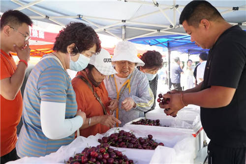 红灯、美早、佳红、俄八……在安盛购物广场北广场,色泽诱人、品种丰富的鞍子山樱桃吸引来往行人纷纷驻足,品尝购买。中华路街道领导和工作人员也来到现场助阵,甘井子区驻村第一书记仕同星穿梭于摊位间,帮果农宣传推介。驻村选调生张帅、尹爱茹和驻村书记同步发力,线上线下销售红红火火。当日,数千斤樱桃被抢购一空,销售额远超预期。