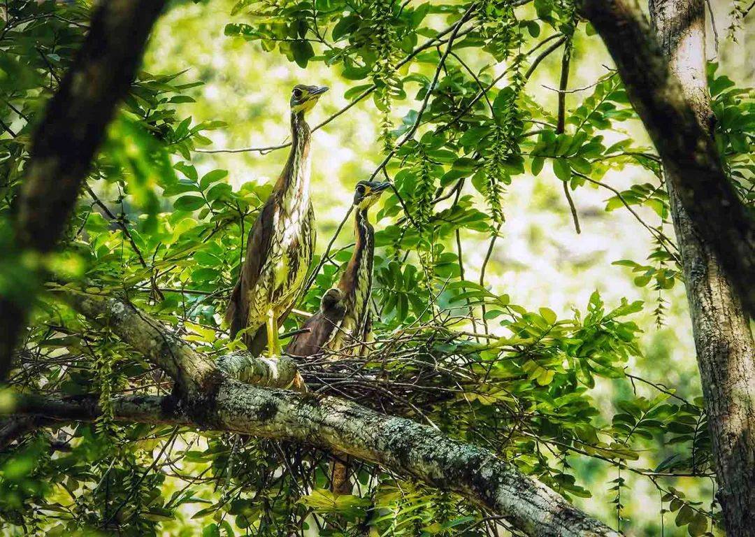 海南虎斑鳽数量稀少,野外成年个体仅存1000余只,因其昼伏夜出、行踪隐秘,极少被人类观测到繁殖行为,也被誉为“世界上最神秘的鸟”。而伊山生态保护区鱼虾丰富、森林茂密,为海南虎斑鳽提供了绝佳的繁衍栖息环境。