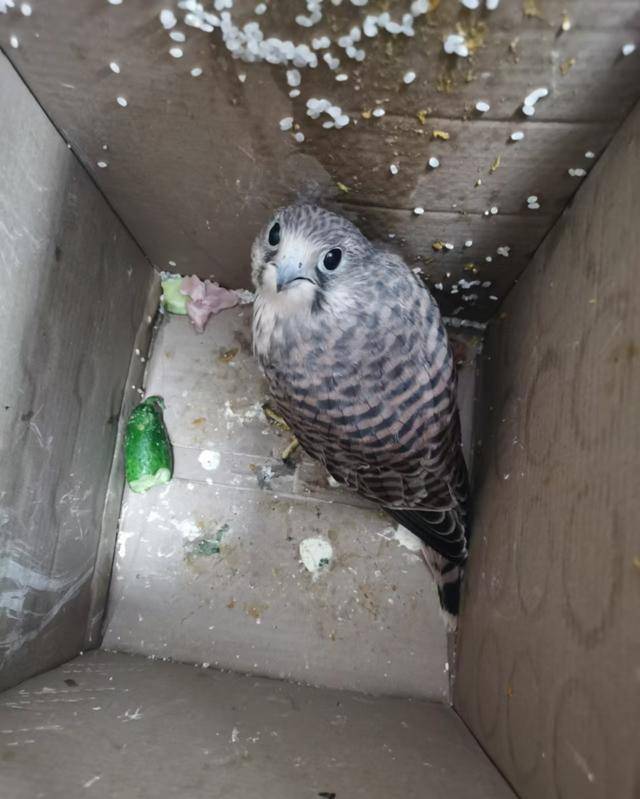 近日,平谷区滨河街道向阳社区的屈阿姨家门前出现了一只意外“访客”:一只从没见过的“怪鸟”立在了门口角落里。屈阿姨将小鸟转移至纸箱中,交给社区工作人员,随后小鸟被转移至平谷区园林绿化局野生动物救助站。经专业人士确认,该鸟是我国国家二级重点保护动物红隼。