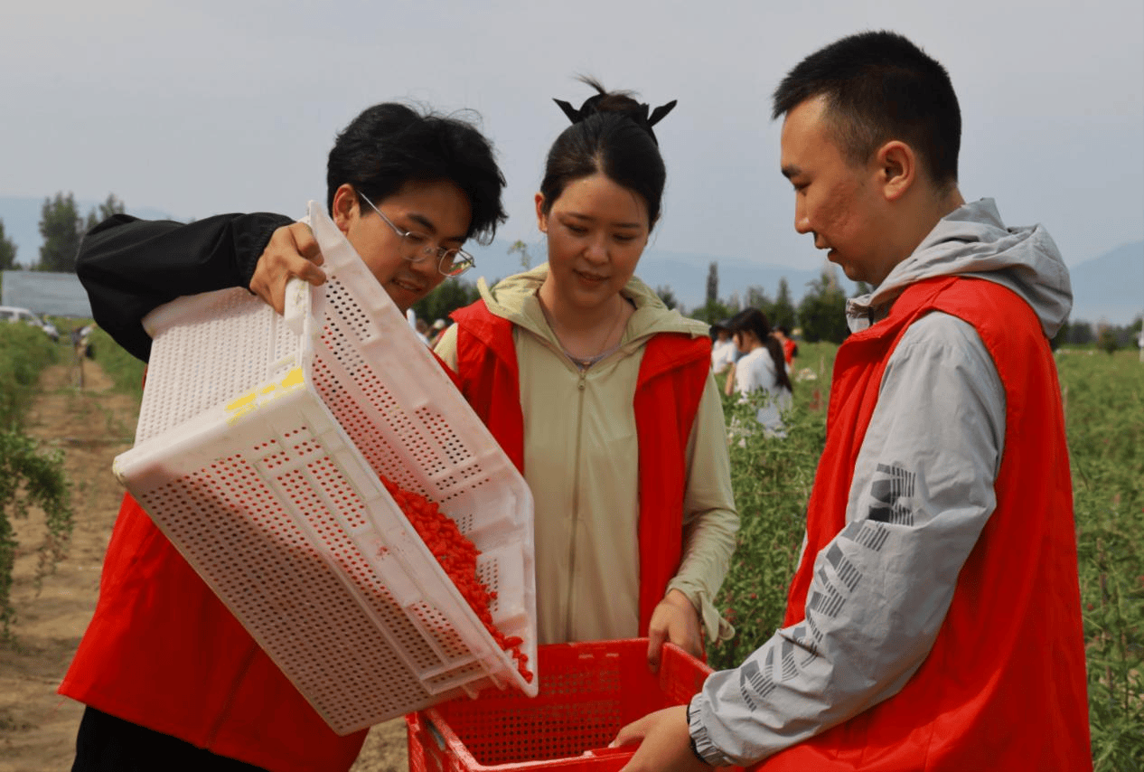 种植户张健华看着丰硕果实,眉头舒展感慨道:“枸杞大批量下来了,正愁人手不够,多亏这些志愿者,不仅解用工荒,采摘质量还高,今天在他们的帮助下大概能采收1000公斤左右。”